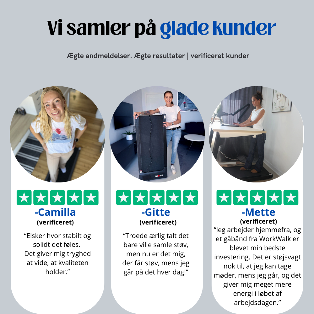 Prøv WorkWalk risikofrit i 30 dage. Hvis du ikke er tilfreds, kan du returnere produktet og få pengene tilbage. Gør dit hjemmekontor til en aktiv arbejdsplads med ro i sindet.